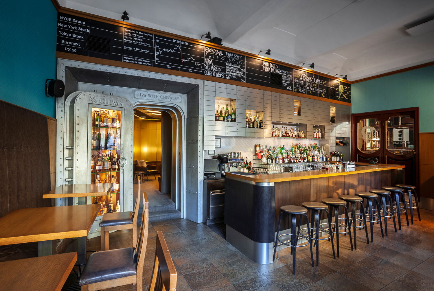Na La Casa de La Havana Vieja volně navazuje i druhý podnik rodiny Dvořákových, The Banker's Bar. Inspiraci čerpá z prostředí prvorepublikové banky a funkcionalistické estetiky. Interiér zdobí autentické detaily včetně trezorových dveří, bankovních schránek nebo tabule s historickými burzovními daty. Hlavním lákadlem jsou kromě výběru whisky, ginu a dalších destilátů samozřejmě i koktejly, jež zde připravují podle nejnovějších trendů i zapomenutých klasik, s důrazem na sezónní a lokální suroviny. A stejně jako v La Casa de La Havana Vieja, také zde dbá tým na individuální přístup a špičkový servis. Výjimečný zážitek pak už pouze podtrhuje výhled na kostel sv. Haštala, který dodává baru atmosféru starých časů.